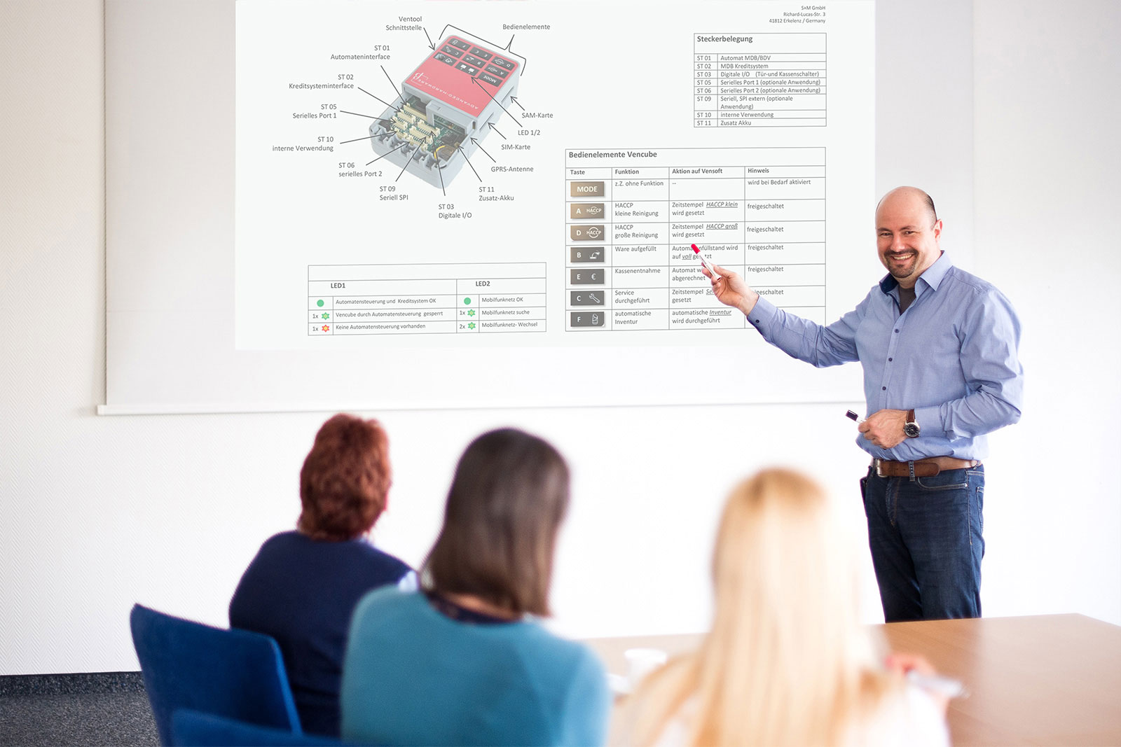 Die S+M ist autorisierter Servicepartner für viele Produkte aus dem Vending-Bereich. Damit genügt unser technischer Support den höchsten Qualitätsansprüchen. Wir haben das Know-How, um qualitativ hochwertige Reparaturen zuverlässig auszuführen. Umfassend geschulte und erfahrene Techniker reparieren, modifizieren und überprüfen bei uns die hochwertigen Zahlungssysteme und Steuerungen sowie die Produkte unserer Eigenmarke Vensolutions.