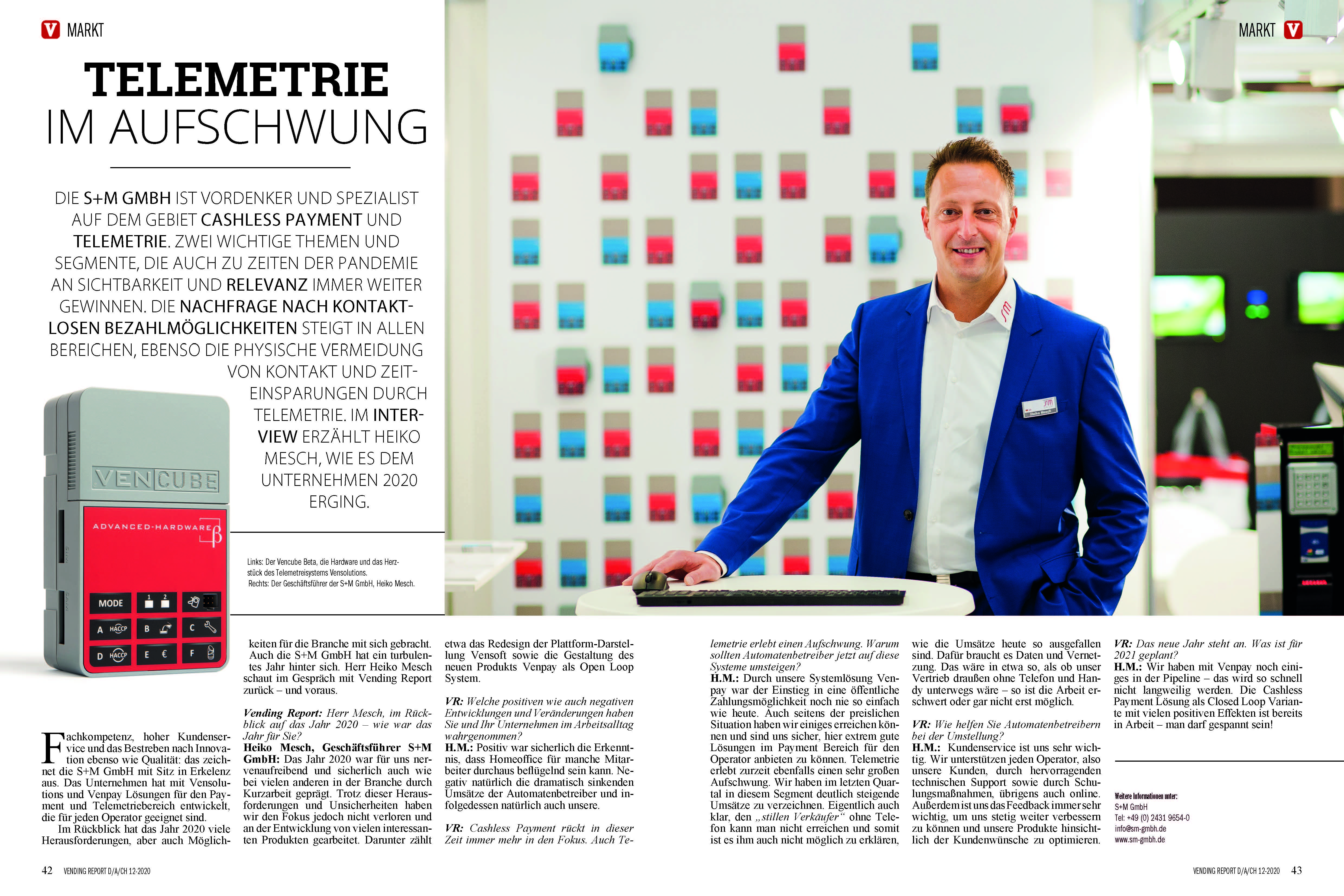 The S+M GmbH is a pioneer and specialist for cashless payment and telemetry systems. These are two important topics which are gaining further relevance, even in pandemic times. The demand for contactless payment solutions is rising across all sectors, as well as physically avoiding contact and saving time by the use of telemetry. In this interview Heiko Mesch talks about his company’s situation in 2020.