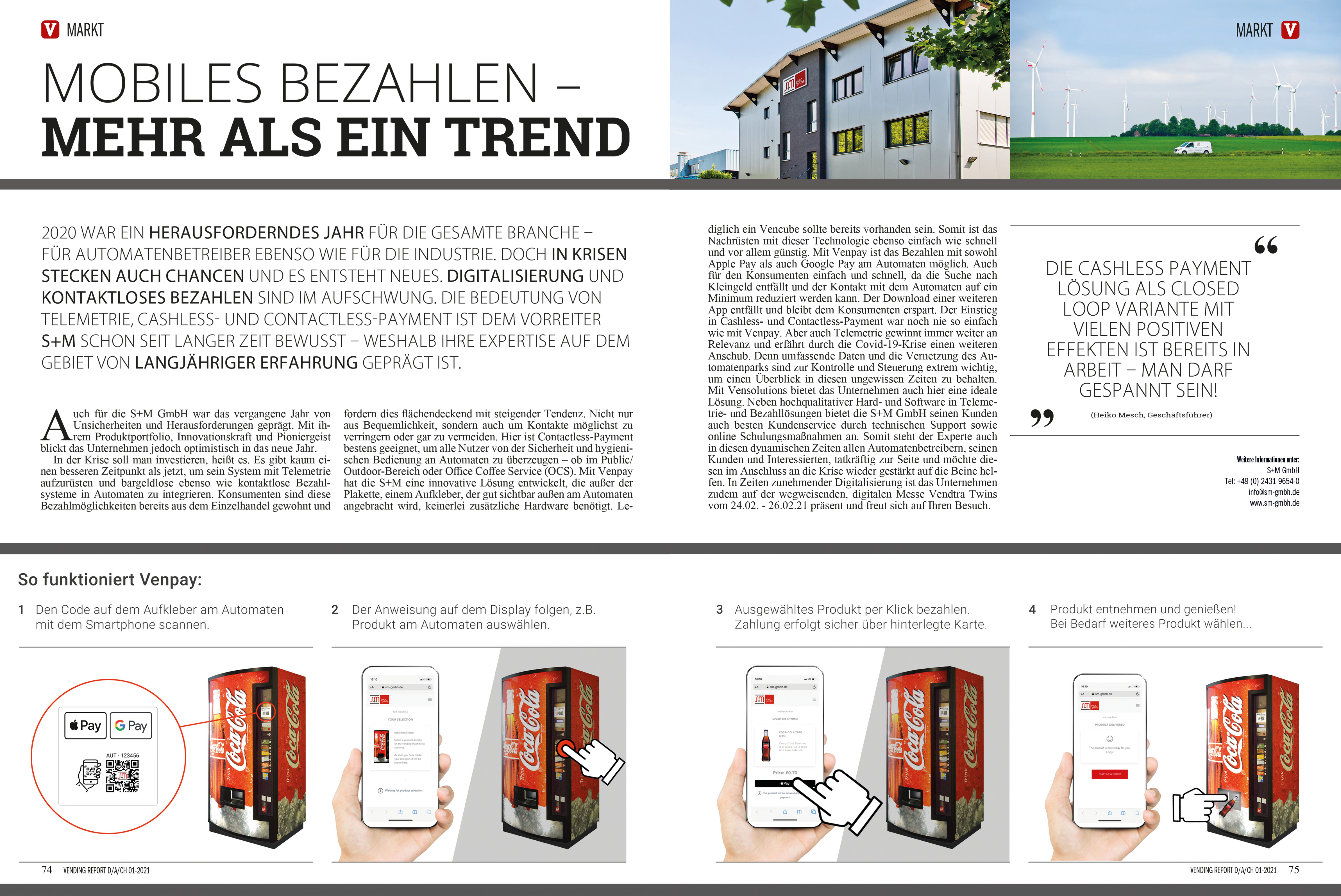 In this three-page interview managing director Heiko Mesch provides detailled information about the innovative mobile payment solution Venpay - the newest member of the Vensolutions family of S+M GmbH.